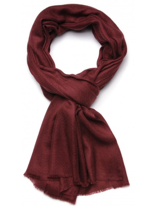 Ein tiefes und raffiniertes Dunkelrot, um für diese handgewebte Himalaya-Kaschmirstola sowohl feminin als auch maskulin zu tragen