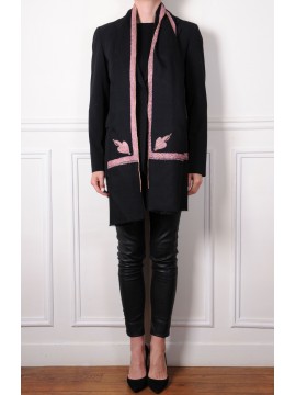 BETTY BLACK sublimates with brilliance the essential basic that is the black cashmere shawl... Adorned with carefully hand-executed multicolored embroidery, this unique piece of...