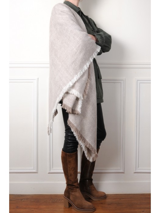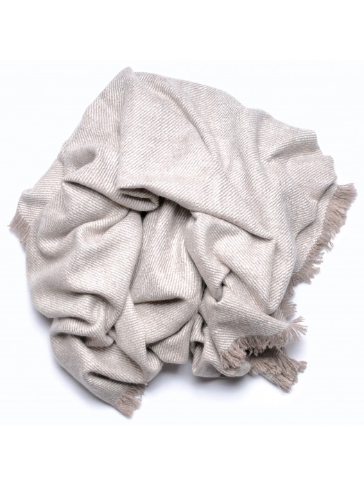 This throw is made from a luxurious hand-spun pashmina yarn, three times thicker than the thin pashmina of traditional ring shawls, which gives it an incomparable softness. Its generous dimensions are perfectly designed to allow you to wear it also as a shawl or around your neck to keep you warm this winter.