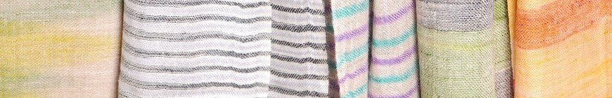 Esta colección de auténticas pashminas con rayas y cuadros se ha tejido a mano en un número limitado de piezas a partir de cachemira del Himalaya 100% pura y de comercio justo.