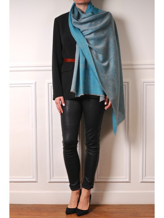 Muy sofisticada con su brillo sedoso, esta auténtica pashmina azul turquesa tejida a mano realzará sus conjuntos de otoño o primavera.