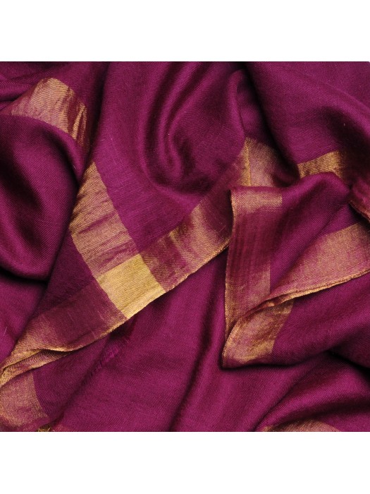 Con un tono ciruela intenso y aterciopelado, esta estola de pashmina evoca la riqueza de los tintes ancestrales... Un sutil borde dorado le aporta un brillo cálido, como el resplandor del sol poniente. Se lleva con una elegancia natural, entre suavidad y carácter.