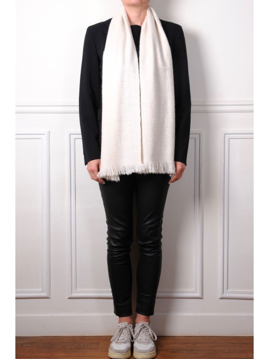 La quintaesencia del lujo discreto, una suavidad atemporal... Este grueso pañuelo se ha confeccionado tradicionalmente con pashmina natural de marfil hilada y tejida a mano. Princesse Moghole Exclusiva para : esta pieza de calidad excepcional es imposible de encontrar en Europa.