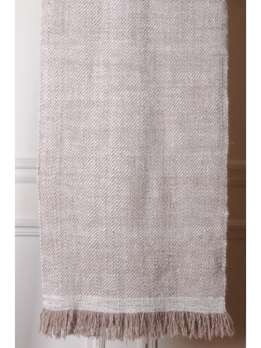 Tejido: sarga sobre urdimbre beige natural y trama marfil natural