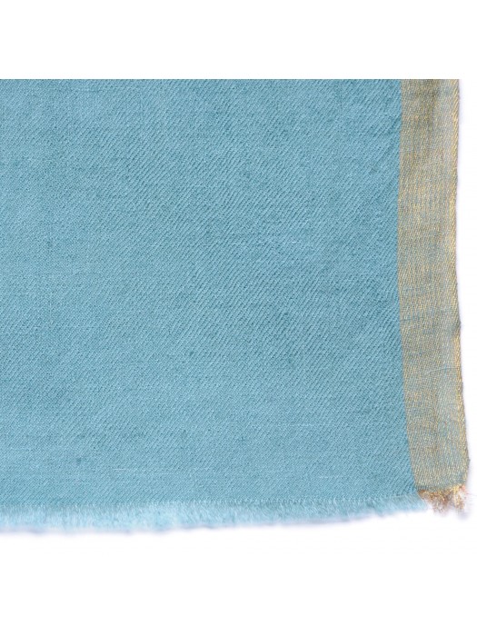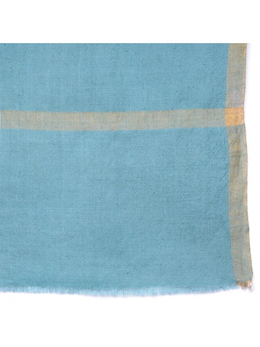 Le bleu vert de cette étole évoque la profondeur des eaux calmes, traversées de traits d’or comme des éclats de soleil... Parfaite alliance de confort et de luxe elle saura vous accompagner en toutes circonstances !