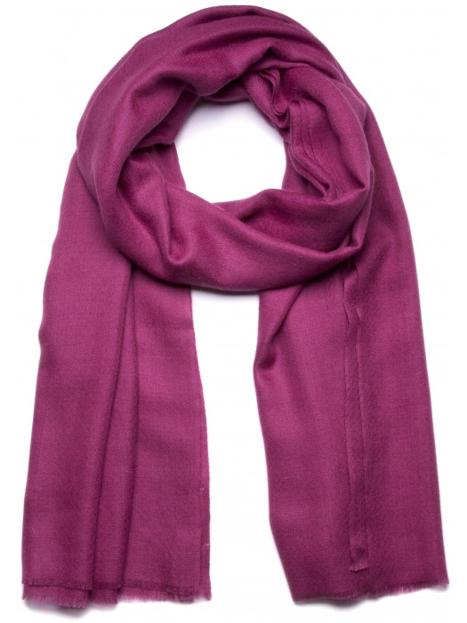 Le châle en véritable pashmina pur cachemire de l’Himalaya tissé main dans un joli ton de Prune tirant sur le framboise écrasé...