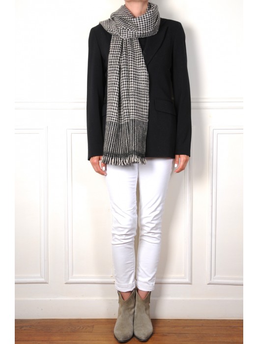 Emblématique du chic intemporel, l'écharpe en tissage pied-de-coq dans une version d'exception en cachemire filé main qui conjugue Luxe et Éthique. D'une douceur et d'un moelleux irrésistibles cette écharpe se porte au féminin comme au masculin !