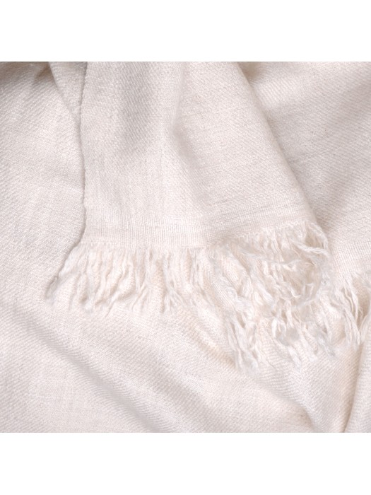 Confectionné artisanalement en pashmina semi-épais filé à la main, ce châle naturel ivoire aux reflets nacrés vous enveloppera de sa douceur moelleuse d'une chaleur exceptionnelle ! Un luxe discret et durable qui transcende le temps...