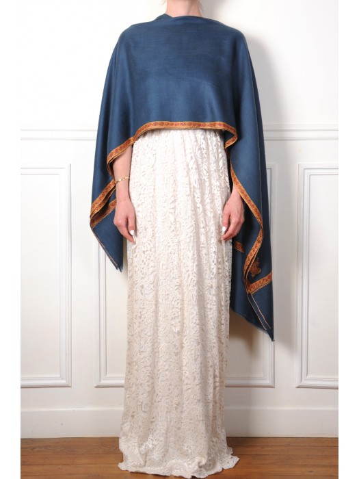 Châle en véritable pashmina brodé main 100% cachemire. Incomparable en terme de douceur, chaleur, légèreté et finesse, ce châle a été tissé et brodé à la main par des artisans cachemiri selon les techniques traditionnelles. Infroissables, immédiatement chauds au porter, les pashminas font la renommée du Kashmir depuis le 15ème siècle.