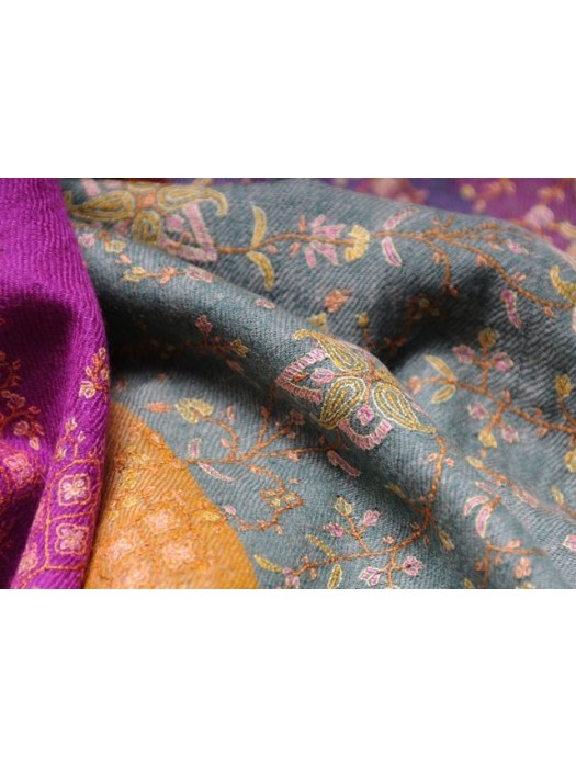 Pashmina 100% cachemire Multicolore tissé et brodé main sur toute la surface