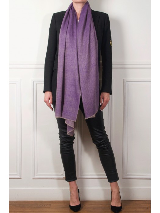 Molto sofisticata, questa pura pashmina viola intrecciata a mano in puro cashmere dell'Himalaya è adornata da scintillanti riflessi di marezzatura.