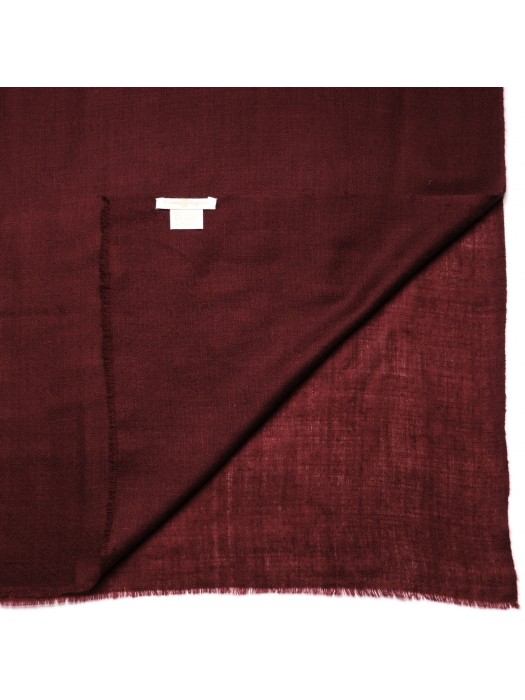 Un rosso scuro profondo e raffinato, da indossare sia per uomo che per donna per questa stola di cashmere himalayano intrecciata a mano