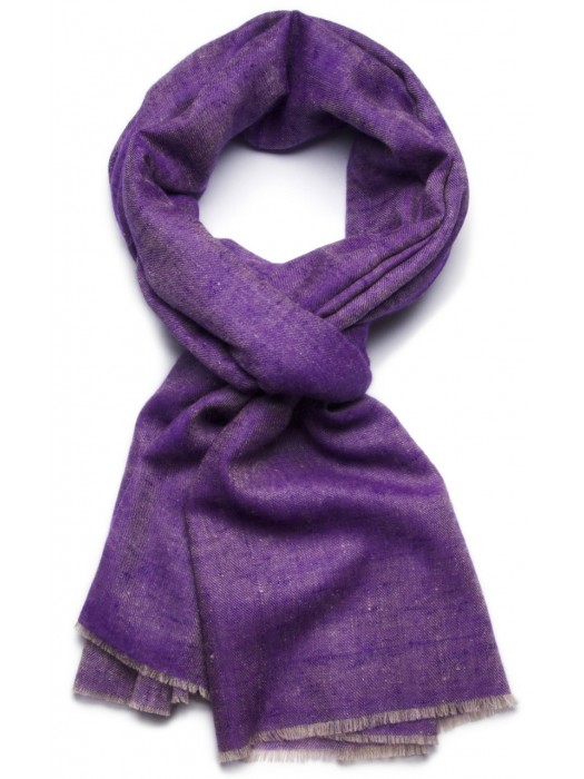 De meest geraffineerde: de omkeerbare paarse sjaal met moiréaccenten.