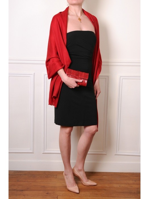 Een zeer elegant karmijnrood voor deze handgeweven pure cashmere pashmina stola
