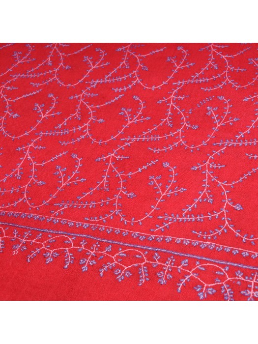 De tijdloze moderniteit van deze zachte karmijnrode kasjmier stola geborduurd met een verrukkelijk bladmotief... Veel charme voor een Pashmina die al je outfits zal opfleuren!
