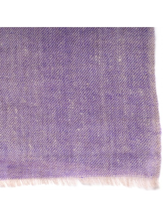Stola gemaakt van 100% cashmere pashmina. Onvergelijkbaar in termen van zachtheid, warmte, lichtheid en finesse, is deze stola met de hand geweven in het traditionele vogeloogpatroon door een ambachtsman uit Kasjmir. Kreukvrij en onmiddellijk warm om te dragen, is dit type sjaal al eeuwenlang een handelsmerk van Kasjmir. Waarschuwing: dit artikel kan verslavend zijn! Omkeerbare keperbinding aan beide zijden voor een glinsterend iriserend effect, één zijde overwegend beige, één zijde overwegend paars, zuivere randen.